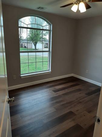 Minutes from downtown Bentonville, local attractions and Walmart Home Office. Newly renovated, beautiful home. Almost everything new and all freshly painted. Luxury vinyl plank flooring and tile throughout house. Large backyard and quiet neighborhood. Spacious master with 2 walk-in closets. Open kitchen with eat in area and extra space. Must see