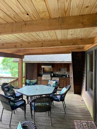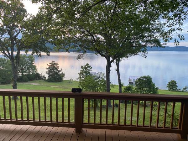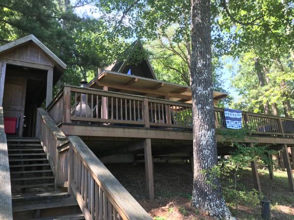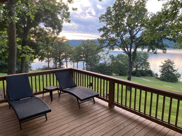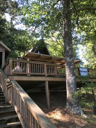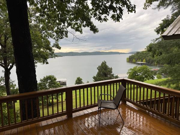 Fabulous View! Completely furnished water front cabin thirty minutes from Rogers or Bentonville on Beaver lake. It has wood floors, a fireplace, and central heat and air. The cabin has one bedroom (king bed) plus a loft (twin beds) and a queen pull out sofa in the living room.The cabin sits beside a cove that is a fisherman's haven. This 850 square foot cabin has a 1500 square foot deck with an additional warm weather shower house, and a laundry room with a full size washer & dryer. Unbelievable location with an unbelievable view. Sheets, towels, and kitchen with all of the amenities are included. Water is included, but electricity and gas are not included.