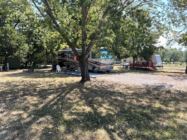 We rent extra wide and shade tree full hookup lots (Water, Sewer, 30/50amp Electric) for your RV at only $300 plus just the electric you use. Why pay more if you don’t use it?! Keep your RV with us year round at Lake Ft. Gibson and know your campsite is always ready for you at Gibson RV Park by the Lake.