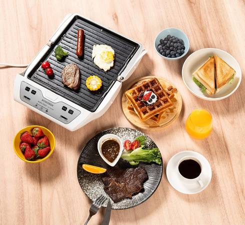 3-in-1 Sandwich Maker. Waffle Iron 1000W Grill with Removable Non-Stick Plates, 3-Level Temperature Control, Easy to Clean plates remove with one button. All controls are Touch Buttons.
