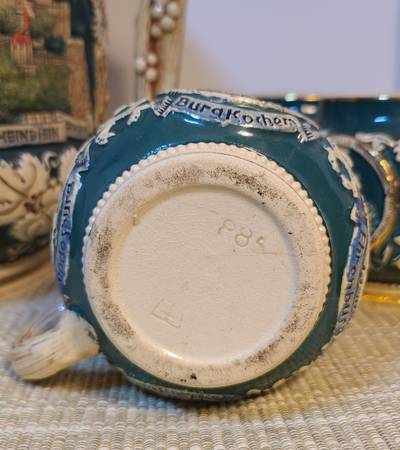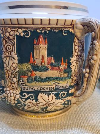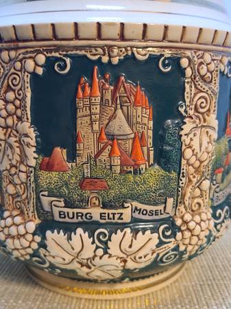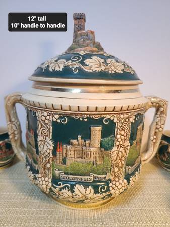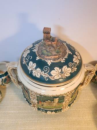 Very unique 1960's German stoneware punch, ale, or soup terrine Excellent Condition No chips or cracks Including 6 cups