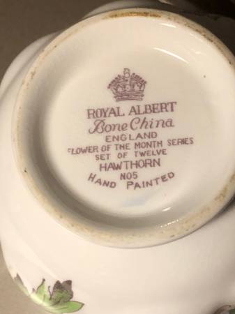 Royal Albert Bone China England Flower of the month series Hawthorn No 5 of set of 12 Mint condition. Original owner Price firm