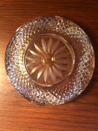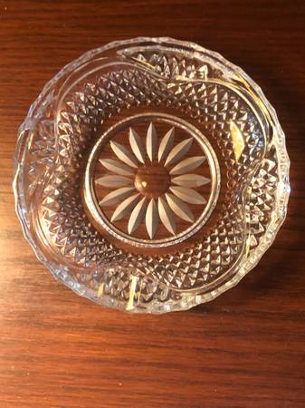 Ornate heavy glass ashtray. 6”. Original owner. Mint condition