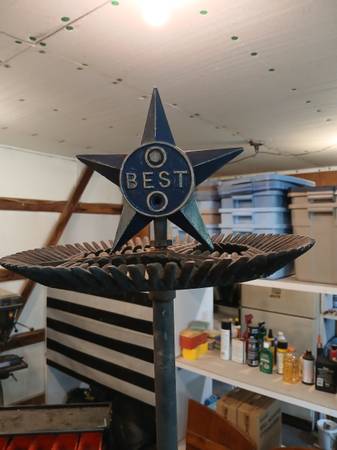 We have for sale a John H. Best buggy whip Store display. It is cast iron and stands 7.5 ft tall. It is in excellent condition and it is not very common to find one this complete.