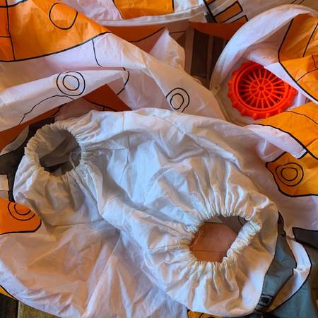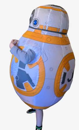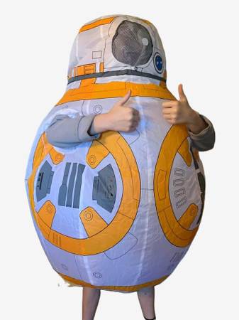 Kid’s Halloween Star Wars BB-8 blow-up/inflatable costume, Rubie’s brand, one size fits most (child in photo is about 55” tall), costume is in good pre-owned condition, includes a new fan and battery pack, all for only $25. This would also be great for dress-up! Listing for my daughter, no holds unless pre-pay with Venmo, porch pickup in Fayetteville, AR, ~1 mile from I-49 Wedington exit, cash or Venmo.