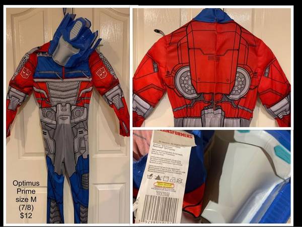 Optimus Prime Halloween Costume, Kid’s Size Medium (7/8), this would also be great for dress-up, only $12, listing for my daughter, no holds unless pre-pay with Venmo, porch pickup in Fayetteville, AR, ~1 mile from I-49 Wedington exit, cash or Venmo.