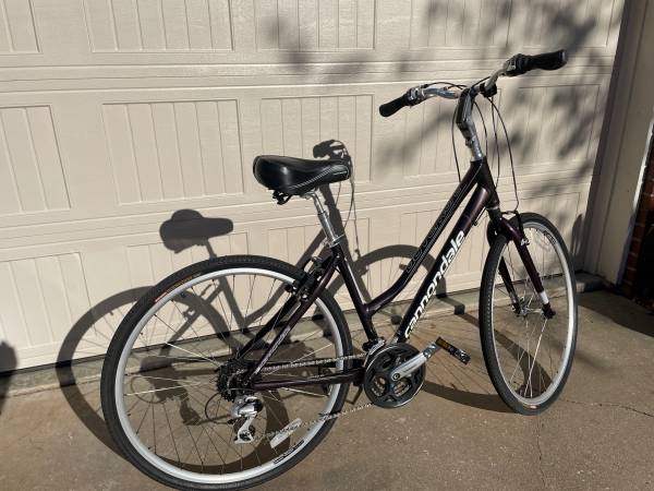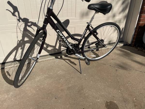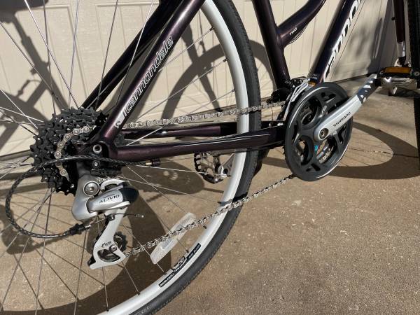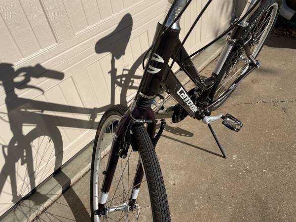 Excellent condition Cannondale Adventure 2 hybrid bike, size small frame. Has a 24 speed (3x8) Shimano drivetrain, Alivio rear derailleur, grip shifters. Brakes are linear pull v-Radial branded brakes. 700c Cannondale C4 double wall wheels paired with Kenda Kwick-Trax tires 38mm width. Has a Cannondale headshox for front suspension and adjustable stem angle for rider preference. Bike has been tuned up and cleaned up, ready to ride. Text number listed, thanks.