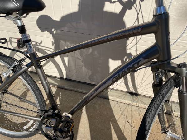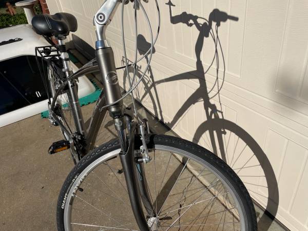 Excellent condition Cannondale Cypress DX hybrid bike, size medium frame. Has 24 speed Shimano Altus drivetrain with grip shifters, linear pull v-brakes. 700c Giant double wall wheels paired with Giant P-X3 35mm width. Rear rack included, also have bag that can include. 60mm front suspension to soak up bumps, and also has adjustable stem angle. Bike has been tuned up and cleaned up, ready to ride. Text number listed, Thanks.