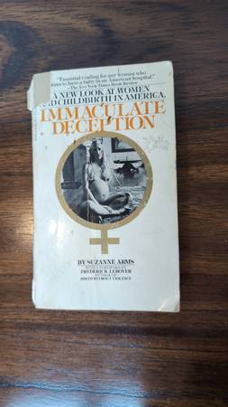 Signed by the author! Out of print! 1977 Printing by Bantum. "Immaculate Deception" by Suzanne Arms was a ground breaking book in it's time. It is a classic with historical significance in understanding how we ended up where we are today. Arms explores themes of women's rights, reproductive health, and the impact of societal norms on women's choices. It critiques the medical establishment and advocates for women's autonomy over their bodies.