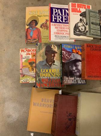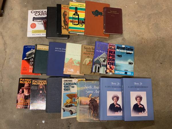 Have about 50 books on a variety of subjects. In good condition. $40 for all. John at 4seven9 six4zero 2six9four
