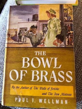 Hardback-The Bowl of Brass by Paul I. Wellman- 100 Years On Bass by Dave Hawk Paperback-Frenchman's Mistress by Irene Michaels- Homeward Winds the River by Barbara Ferry Johnson- Looking for Hogeye...