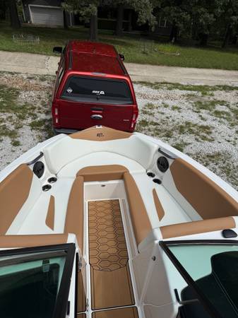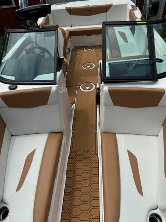 This boat was purchased new in spring of 2024 and is low hours, meticulously maintained, always dry docked, and turnkey ready for a good time. It comes fully stocked to hit the lake with 2 surf boards, a 3-person tube, multiple ski ropes (one brand new), a lilly pad for lounging, 14 life jackets ranging across all sizes, and a cooler under the seat ready to be stocked with your drink of choice.