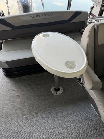 Still time left to enjoy this beautiful 2024 Bennington Tritoon SXSB with a Yamaha 150 outboard with only 62 hours. Blacked out rails, electric Bimini, dual batteries, LED lights, 2 anchors (box and richter), 2 person tube, lake mat, lake saddles, 2 sets of skies, dock lines, bumpers, life vests all included! This boat has plenty of storage space under the seats and also has the in floor storage as well. Boat has been extremely well taken care of and has extended warranty on the engine (2032). Boat is ready to go and currently at PCM.