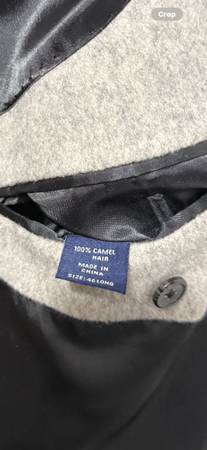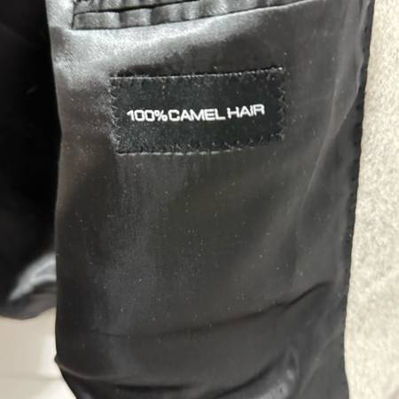 Stylish and versatile light gray 100% Camel Hair sport coat. Features a classic two-button front, notch lapel, full black lining, and flap pockets. Great for business, formal events, or smart casual wear.