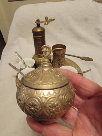 Turkish coffee tray set and Turkish coffee grinder. Handmade