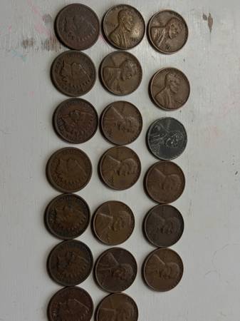 Collection of rare Pennie’s some ranging over a hundred dollars a piece from 7 Indian head pennys and 13 wheat Pennie’s with a 1943 wheat penny which has a rare finish that could bring up to 2000…