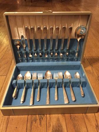 In excellent pre-owned condition, all 45 pieces plus a beautiful flatware chest for only $75, listed on multiple sites, shipping not available, porch pickup off Rupple/Weir, Fayetteville, AR, cash or Venmo. Thank you so much for looking!!
