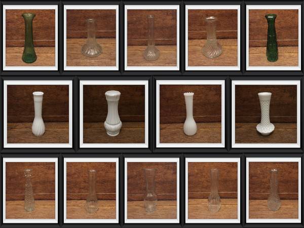 Vintage Bud Vases, perfect for wedding showers, baby showers, weddings, receptions, home décor or just for collecting, great variety, all clean and ready to use/display, measure approximately 6” (2) and 9” (12) high, all in like-new pre-owned condition, no chips or cracks, all 14 for only $40, listed on multiple sites, shipping not available, porch pickup off Rupple/Weir, Fayetteville, AR, cash or Venmo. Thank you so much for looking!!
