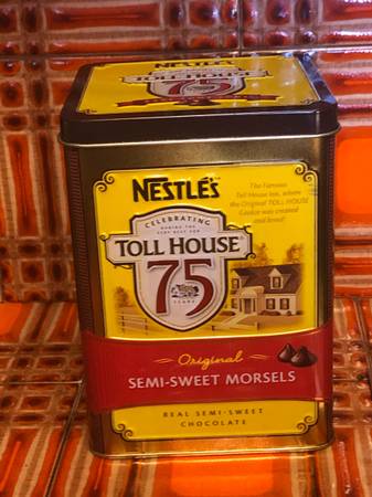 NESTLES TOLL HOUSE LIMITED EDITION TIN 6"x4 1/2" NESTLES 75 YEARS CELEBRATION SEMI SWEET MORSELS 6"X4 1/2" 2015 STRAWBERRY TIN 4"X4 1/2" I HAVE HAD ABOUT 20 YEARS ALL IN EXCELLENT CONDITON FIRM...