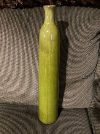 Mcm Ceramic 60s vase Drip Glaze green w/ brown tone Tall 18 1/2 x 3.5” Vintage Art Pottery. Thanks for looking