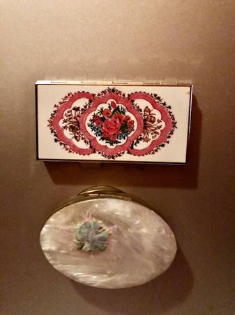 VINTAGE PILL BOX MADE IN JAPAN VINTAGE POWDER COMPACT ORIGINAL OWNER NO SMOKING PRICE INCLUDES BOTH. PRICE FIRM