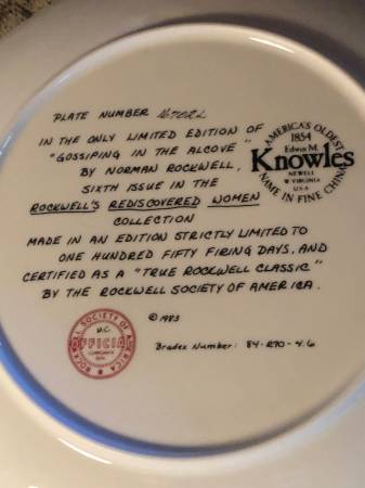 1982 Rediscovered Women series. Plates #4-#5-#6. Mint condition. Original owner no smoking. Other plates in this series available