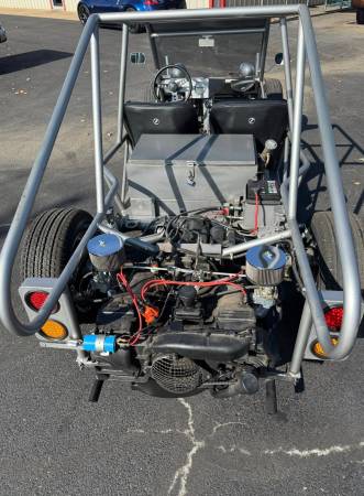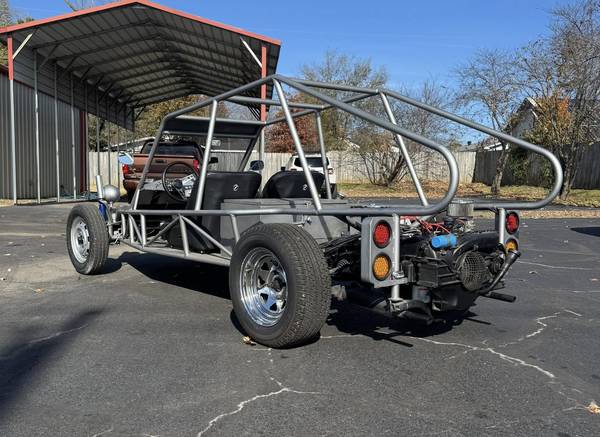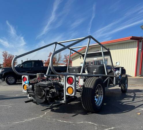 The 1967 VW Sand Rail is a classic off-road buggy that originated in the 1960s, designed for driving on sand. It typically features a tubular steel chassis, a rear-mounted engine often sourced from a VW Beetle, and integrated roll-over protection. The vehicle is powered by a 1.6-liter flat-four engine and is equipped with VW front and rear suspension and brakes. Sand Rails are known for their bucket seats and safety features, making them popular among off-road enthusiasts. This one is street legal.