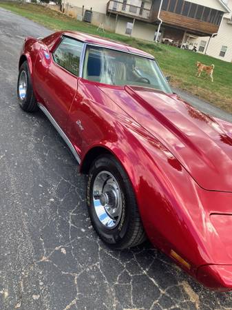 Amazing 1976 with a beautiful paint job. This corvette has had tons of new. Brand new Blueprint 350cid with aluminum intake and Holly Carb. sporting 409 hp. This Blueprint engine is not rebuilt but brand new. Rebuilt automatic with mild Stahl converter. New Pypes performance Stainless Steel custom exhaust with X pipe and sounds amazing. Suspension completely rebuilt front to rear including all new bushings, tie rod ends, Ball joints, front coil springs, KYB shocks, U-joints, trailing arm bushings, up-graded rear strut bars that are adjustable for ease of alignment. New power steering hydraulics and hoses, all new SS brake lines front to rear with rubber hoses. 4 new tires. Everything is top notch and this is a fun car to drive. Only an educated cunsumer will appreciate this classic corvette. You can buy these all day long for $18K, but to finish it and make it safe with all thats been done to this one, you will exceed adding another $60K This corvette is ready to drive to California. No trailer needed and enjoy the amzing sound from the exhaust as you drive home. I also have the original number matching engine that goes with it.