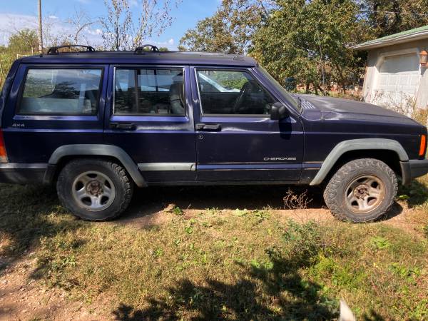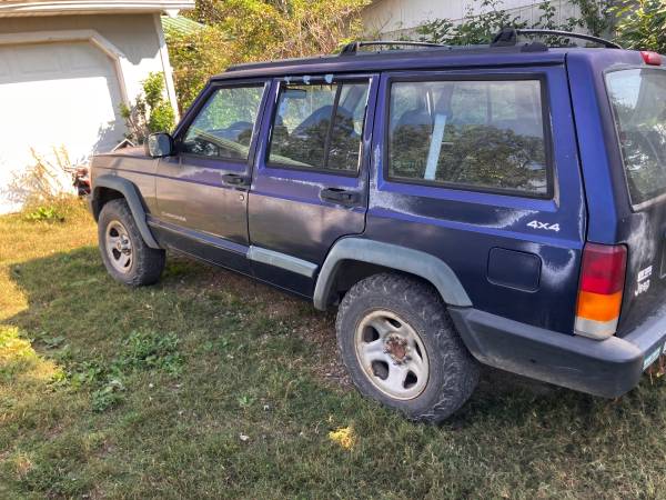 Well used 1997 Jeep Cherokee Sport. 4 door, 4wd. Runs, has some electrical issues with the taillights, they don’t work when it’s cold, no reverse lights, no dashboard lights. Recently replaced the dash assembly as the original one quit. Mileage is around 180,000, but current odometer shows more miles since it’s out of another jeep. Good tires. Interior upholstery is ok, has no headliner. Moon roof doesn’t work. Check engine light is on because it misfires on one cylinder, but it really doesn’t affect how it drives. Has tow package, but tow light plug wires need to be replaced. Would be a great car if you have the time to restore it. Email with questions. Open to offers.