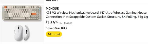 MCHOSE X75 Wireless Mechanical Keyboard, M7 Ultra Wireless Gaming Mouse, Tri-Mode Connection, Hot Swappable Custom Gasket Structure Great keyboard.