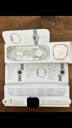 This Apple Watch is brand new, never been worn and is packaged (as shown in attached photos) in its original box which includes; The Apple Watch band, USB-C charge cable.