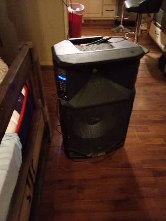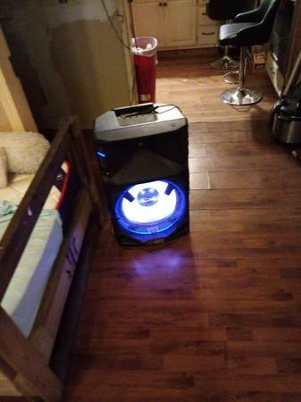 Nice speaker was $370 at Walmart long as it's plugged in works great can't git battery to charge 150 obo blue tooth lights mic am fm