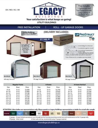 Hurry get your name on the list! 15% OFF TILL THEN END OF THE MONTH! 15% OFF! We also try to price match! LEGACY BUILDINGS is very excited to announce that they have entered into an agreement with Sherwin Williams to paint the sheet metal steel coil with their industrial paint coating which will provide our customers with an exclusive Sherwin Williams 20-YEAR PAINT WARRANTY!