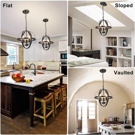 Dimmable Hanging Light chandelier is compatible with 3 maximum 60 watt candelabra E12 base bulbs.