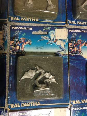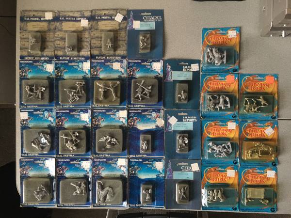 Presented here are a total of 40, 25mm, Ral Partha and Grenadier metal figures. They're being sold together as a group. These miniatures are from the mid 1980's. Most (26) are in their original packaging, never opened. They are more valuable when new and never opened. Some of these are rare. I saw one of these on Ebay for $99, another for $79 and another for $50. Most were selling for $19 to $30. I'm selling for an average of $14 per miniature. I can get more selling them piecemeal but it's more work and don't care for the hassle.