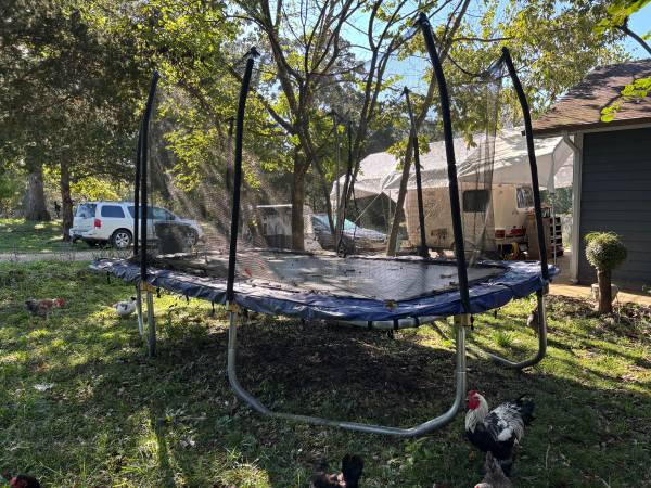 9x14 rectangular trampoline in good condition, with side netting. You can even have the corner block steps if you want them. North of Eureka Springs, we will help disassemble and load with you. Text...