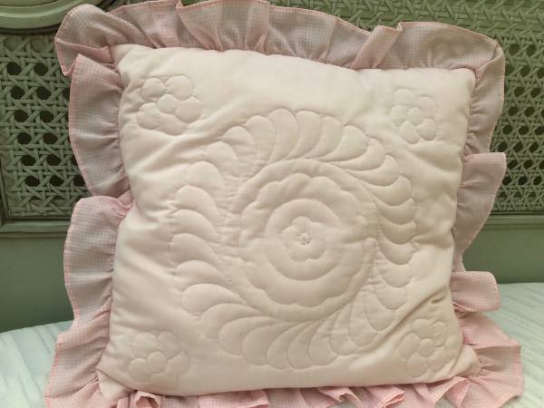3 18x18 pink pillows Washable nice embroidered patterns $9 each $23 for all three