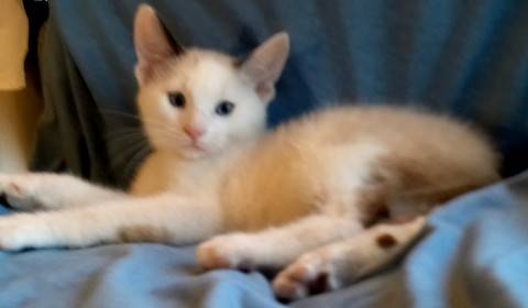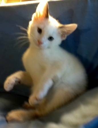 12wk old Male blue eyed No tail kitten. He has been wormed and is litter trained. He is such a loving boy and we want a good loving home for him with lots of attention. He has been raised indoors....