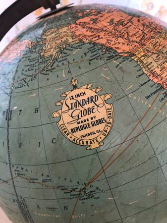 12” globe on stand. Replogle-Chicago. Astrology dial-flight patterns. Original owner No smoking Price firm