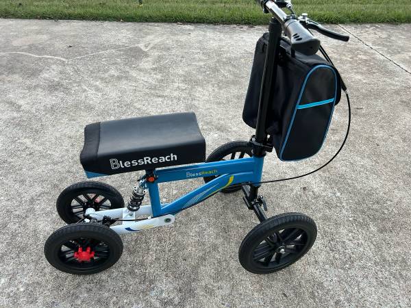 Selling an all terrain steerable Knee Scooter . Deluxe scooter, double handbreak,for stilts. Injured ankles,foot, recovery scooter Item located in Canandaigua Ny