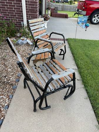 wood needs sanded and refinished but good wood, chair rock/glide