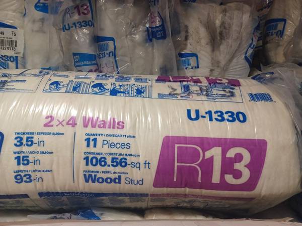 Johns Manville R13 Insulation for 2 X 4 Walls. Unfaced. Each piece is 3.5" X 15" X 93". Each bundle has 11 pieces for a total of 106.56 sq. ft. Price is per bundle. 75 bundles currently available....