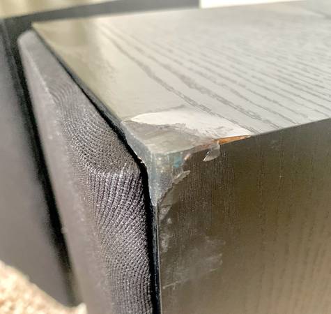 They are in very good condition except one speaker has a cosmetic blemish in an upper corner as shown in the last photo.