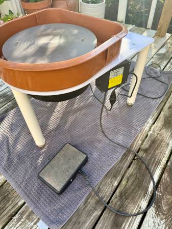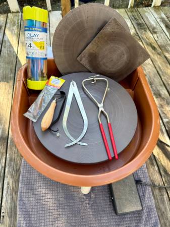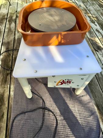 Clay Boss pottery wheel by Speedball. Wheel works fantastic. Used for a couple weeks. Comes with XIEM tools 14 pc tool set plus a few other handy tools. Dirty Girls 10+1 master bat system and drying rack. Has 2 extra plastic bats that came with wheel. Also comes with 200lbs of clay all stoneware. Only took outside to take pictures. $1,700 value asking for $1000 firm. Only selling to pay medical bills.