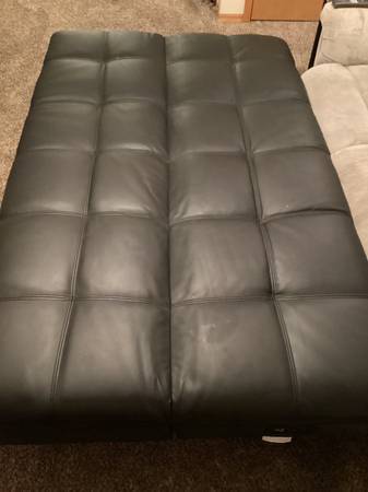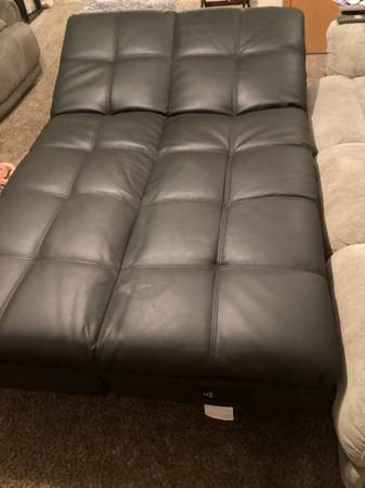Very nice Serta brown leather sofa/futon in great condition with two outlets and two charging ports. Used very little. $125 No holds, Thanks!