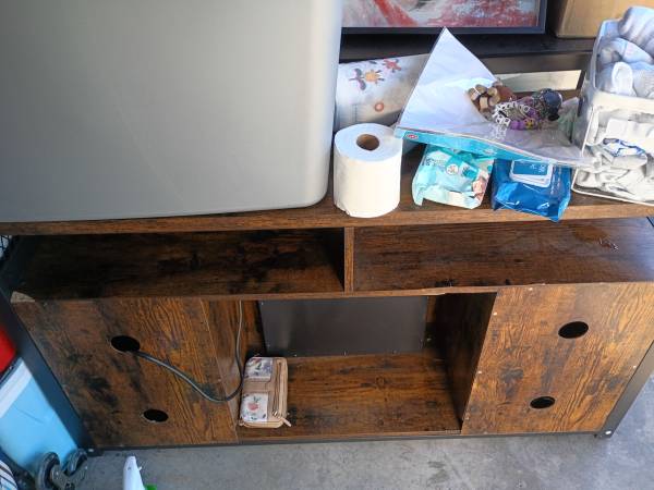 Entertainment center a piece chipped and another place scratched from moving to storage.