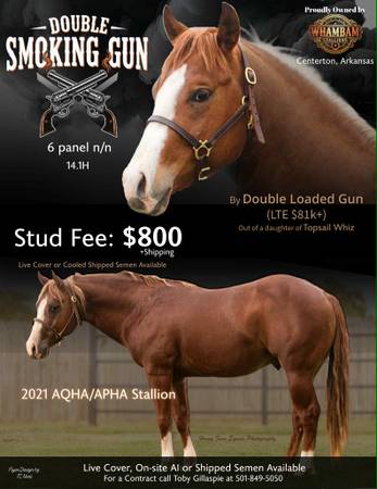 Sud Service: AQHA?APHA Gunner/Topsail Whiz - $800 (Centerton)