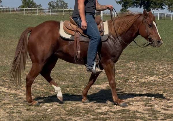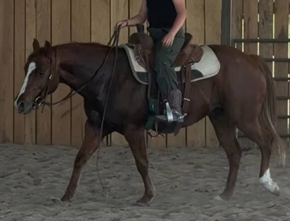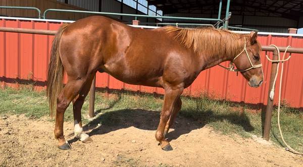 is a 14.1-2 hand very thick QH gelding. He is 5 years young ! He is easy to catch, loads ties shoes and trailers great. He stands still for mounting and rides the very best. He has been used to do ranch work and is great in the mountain trails. Colcord ok.
