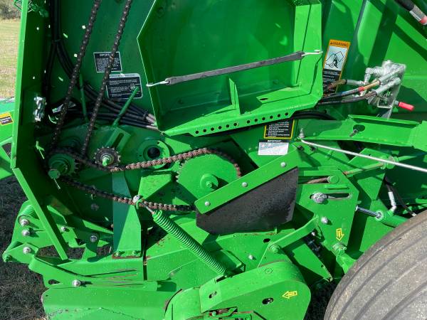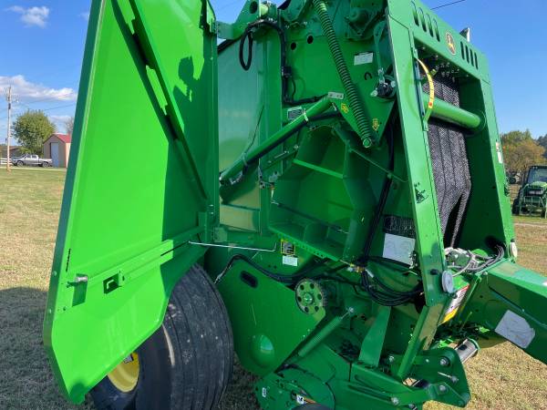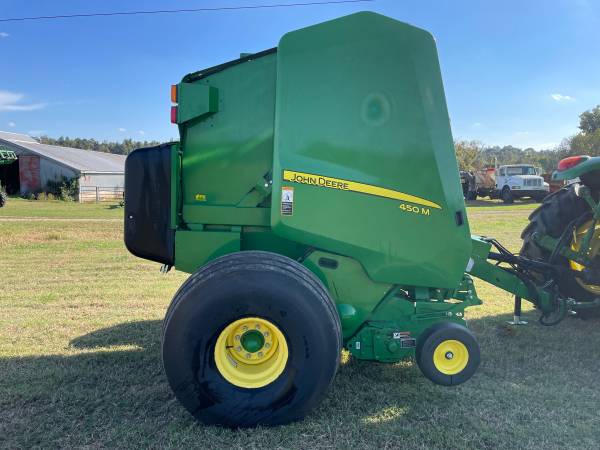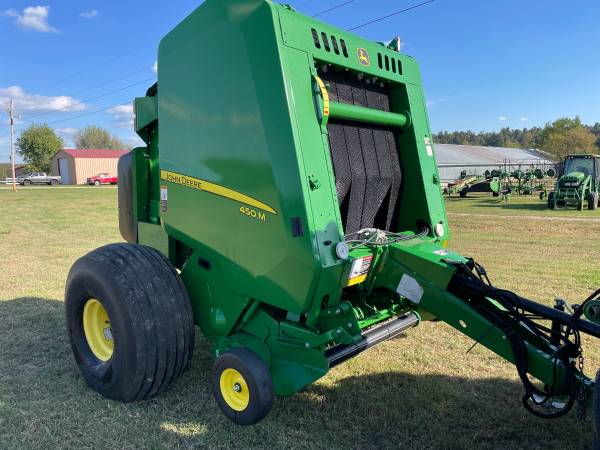 NICE LOW BALE COUNT 450M ROUND BALER FOR SALE. 5200 BALES ON COUNTER AS OF THIS YEAR. MEGA WIDE PICKUP, COVER EDGE NET WRAP. UPGRADED HI-FLOAT 21.5-16.1 BIG TIRES. HYDRAULIC LIFT PICKUP. BALE RAMP KICKER. COMES WITH MONITOR. NEW BELT PINS INSTALLED LAST SEASON. BALER HAS BEEN CLEANED AFTER EVERY SEASON AND GREASED EVERY DAY BEFORE ENTERING FIELD. THIS BALER IS FIELD READY, JUST NEEDS A TRACTOR TO HOOK TO.