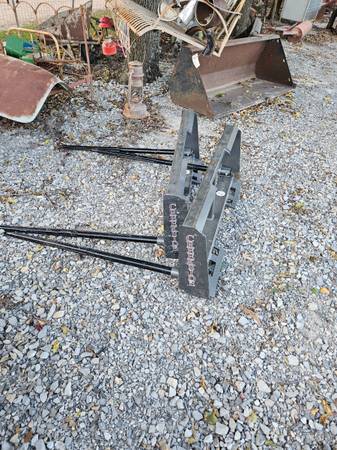 2 Creekside double hay spear skid steer attach made in kansas USA never been used price $550.00 for each one cash only no checks of any kind thank you have a blessed day 😀